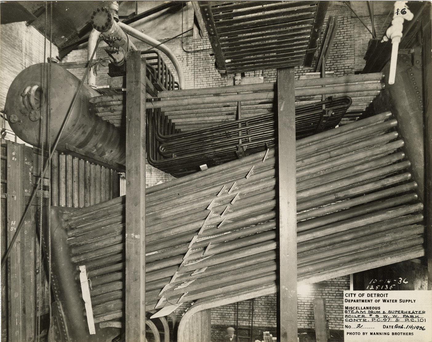 Steam drum and superheater for boiler, Waterworks Park, Detroit water supply system