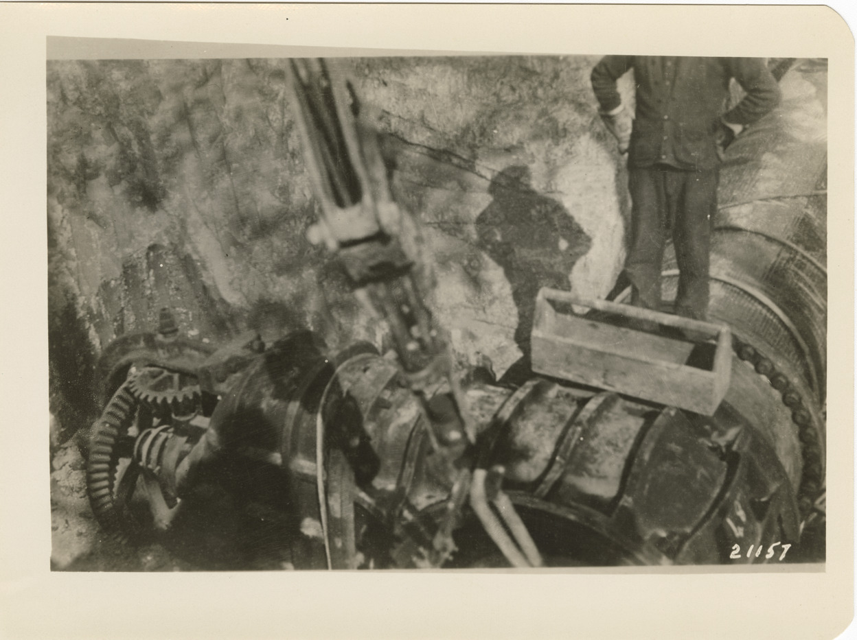 View of workers laying iron pipe, manufactured by United Welding Co., Middletown, Ohio for Detroit water supply system. Stamped on back: "Photographic Dept. The American Rolling Mill Co. Middletown, O. When ordering duplicates refer to number on face of print." Sheet accompanying photographs: "Contract 1929-2. 54" Armco iron pipe in 8 Mile Rd.--John R St. to Livernois Ave. Awarded May 15, 1929 to Julius Porath & Son. Pipe fabricated by United Welding Co., Middletown, Ohio."