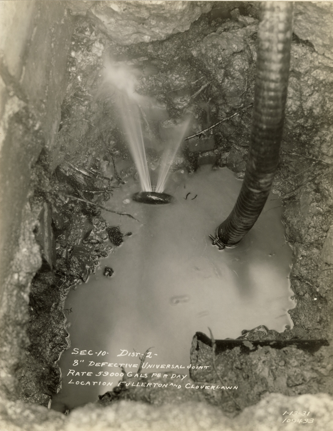 Defective universal joint at Fullerton Avenue and Cloverlawn Avenue, Detroit water supply system