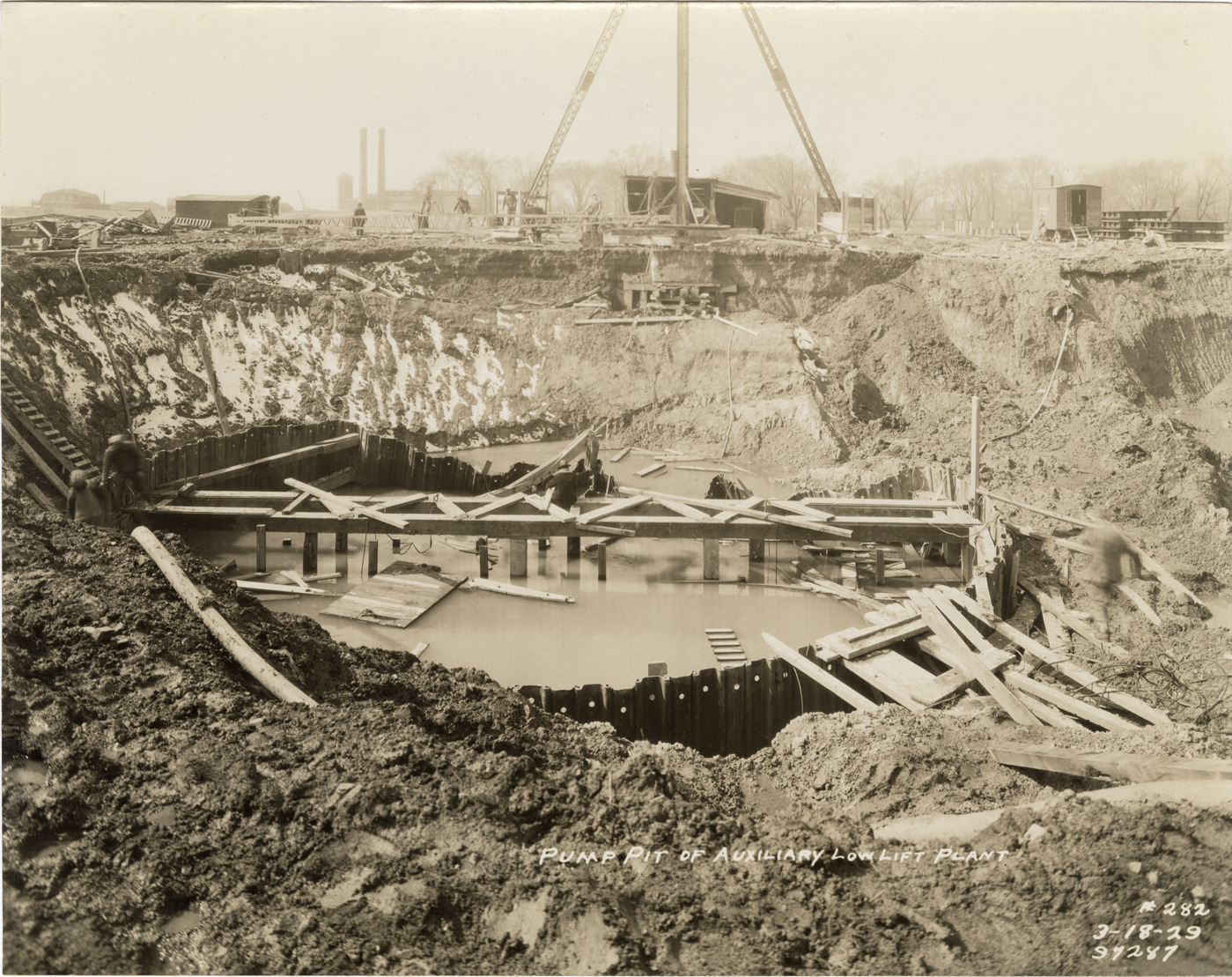 Collapsed sheet piling around pump pit, auxiliary low lift plant, Waterworks Park, Detroit water supply system
