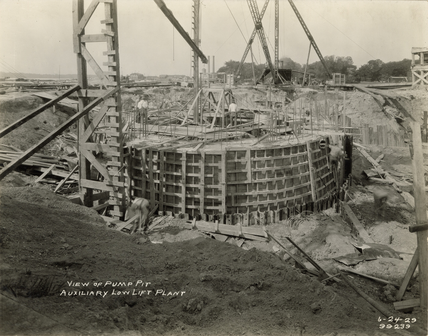 Pump pit during construction, auxiliary low lift plant, Waterworks Park, Detroit water supply system