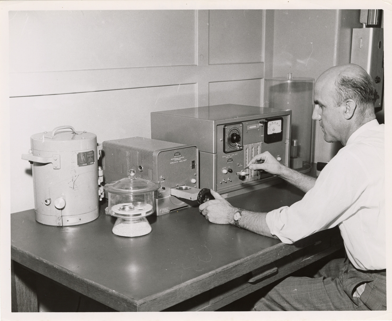Favorite this☆ Worker in laboratory, Waterworks Park, Detroit water supply system Description: View of man with unidentified equipment in laboratory, Waterworks Park, Detroit water supply system. Handwritten on back: "Water Works Park lab. Bert Emanuele." Details Resource ID: bh017633 Creator: Emanuele, Bert Subject: Laboratories--Michigan--Detroit Water utilities--Employees Water treatment plants--Michigan--Detroit Waterworks--Michigan--Detroit Detroit (Mich.). Department of Water Supply Photographic prints Date Issued: Unknown year Format: 1 photographic print ; 8 x 10 in. Member of: Burton Historical Collection Filing Location: MS/Detroit Archives. Water Board. Waterworks Park. Public Relations #1, 15:7 Rights: Physical rights are retained by DPL. Copyright is retained in accordance with U.S. copyright laws.