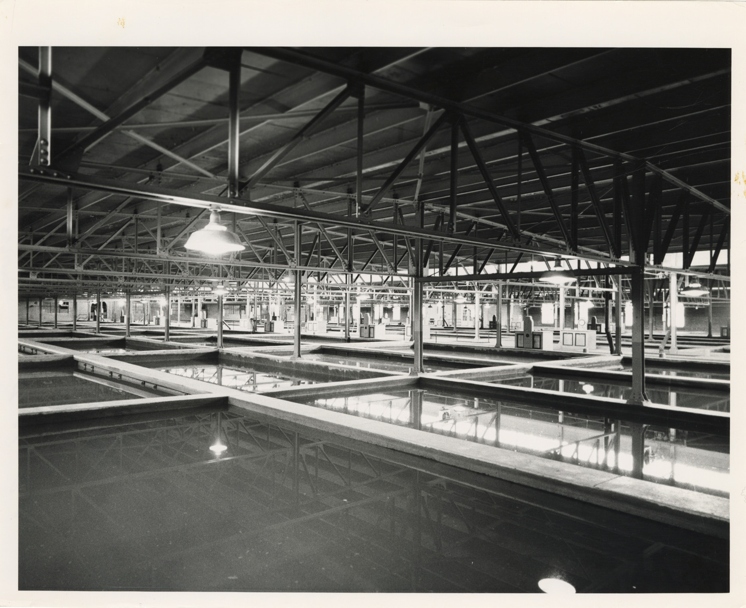 View of filter beds, Waterworks Park, Detroit water supply system. Handwritten on back: "Filter beds, WWP, Oct. 1964."