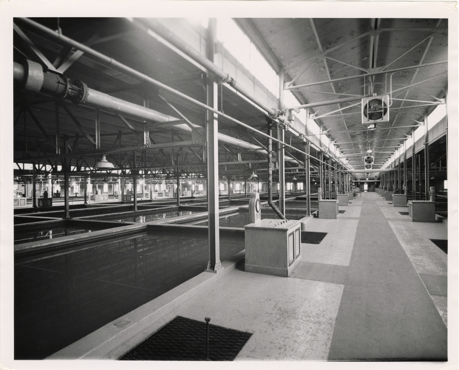 View of filter beds, Waterworks Park, Detroit water supply system. Handwritten on back: "Filter beds, WWP, Oct. 1964."