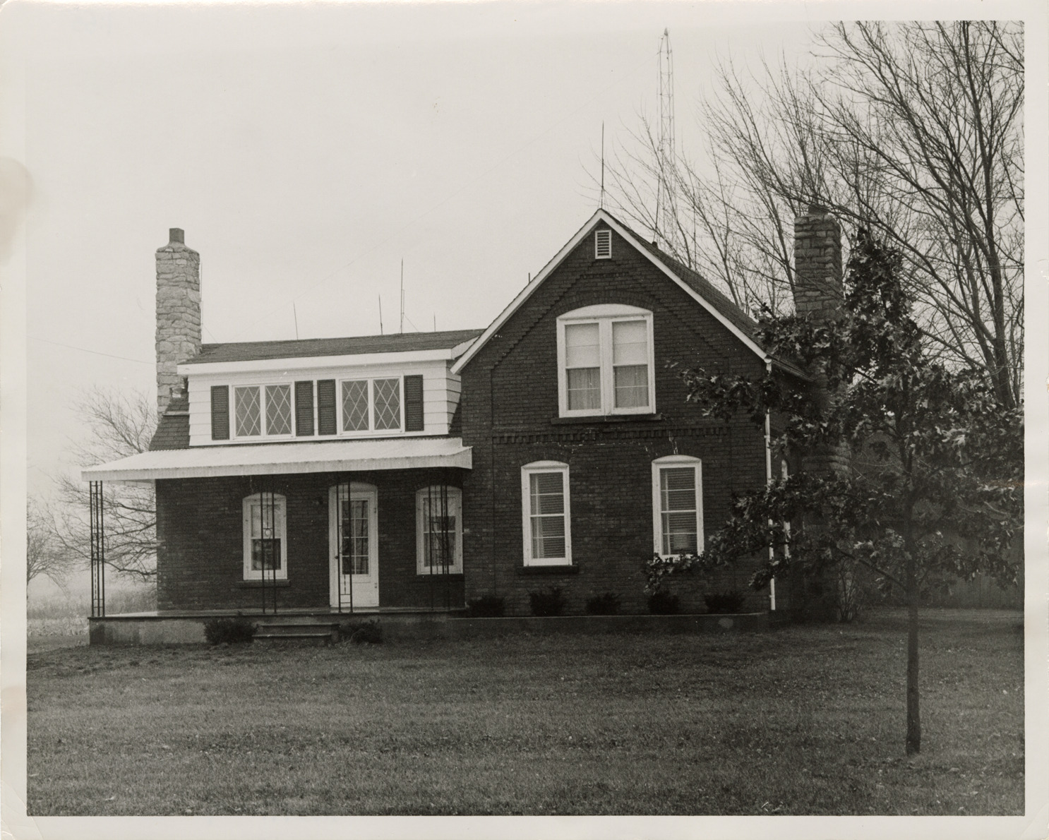 View of brick farmhouse at the Donahue farm in Port Hope, Michigan. Label on back: "Michigan Thumb area--Farms--Donahue farmhouse, 7160 Filion Road."