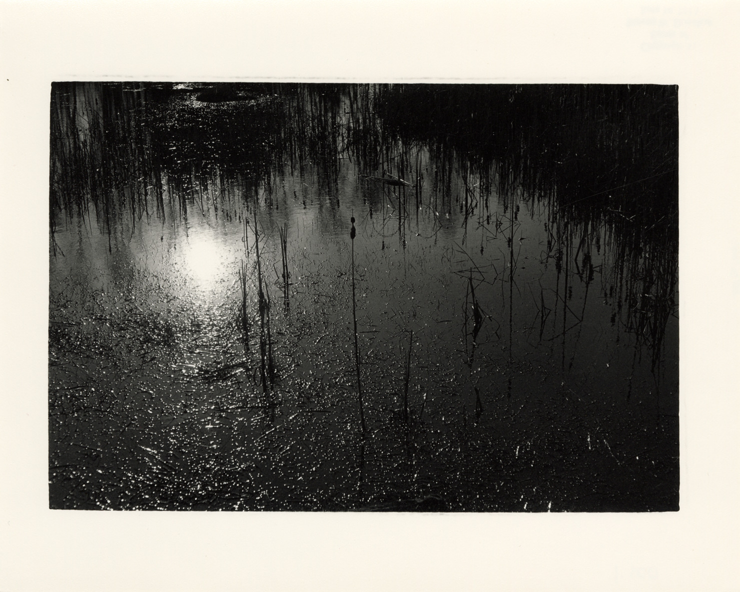 Favorite this☆ Pond Description: View of the surface of a pond. Label on back: "Michigan Thumb area--Nature--Pond reflections." Details Resource ID: bh017908 Creator: Donahue, Steven W. Subject: Ponds--Michigan--Thumb District Nature photography Photographers--Michigan Photographic prints Date Issued: Unknown year Format: 1 photographic print ; 8 x 10 in. Member of: Burton Historical Collection Steven W. Donahue Collection Filing Location: MS/Donahue, Steven W., Box 1 Rights: Physical rights are retained by DPL. Copyright is retained in accordance with U.S. copyright laws. Copyright transferred to Detroit Public Library, 2017-09-12.