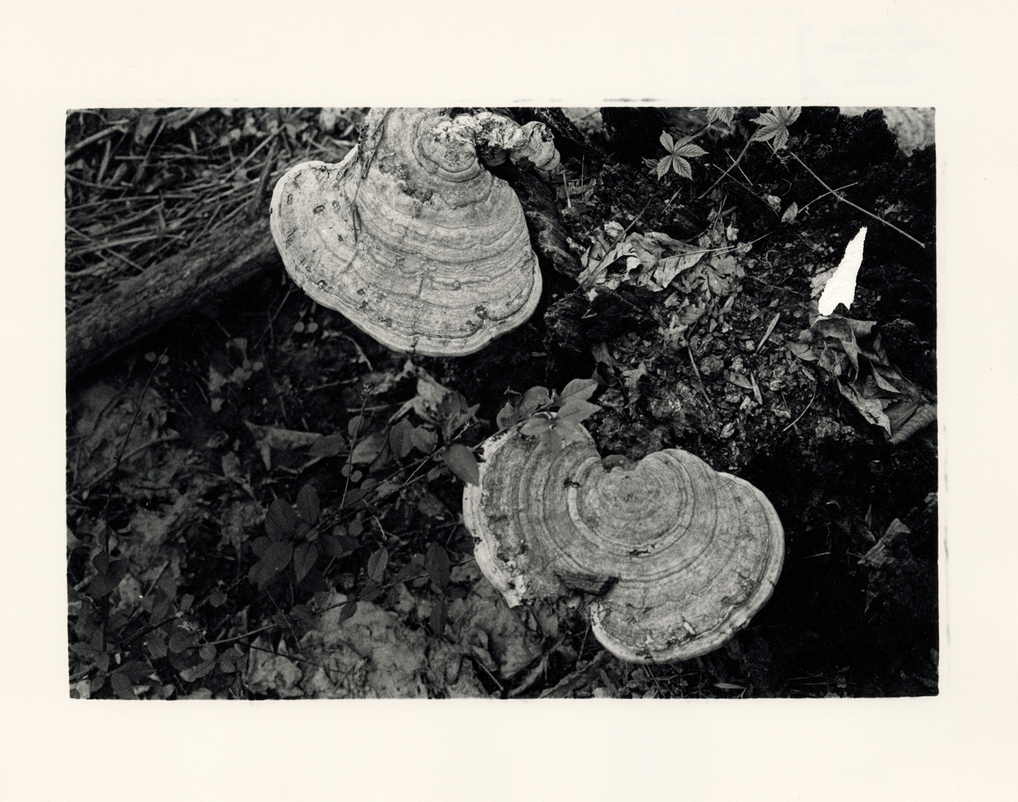 Favorite this☆ Shelf or bracket fungi, Port Hope, Michigan Description: View of shelf or bracket fungi, Port Hope, Michigan. Label on back: "Michigan Thumb area--Nature--Two large shelf fungi." Handwritten on back: "1970s, Port Hope, MI. Fungi in farm woods." Details Resource ID: bh017923 Creator: Donahue, Steven W. Subject: Polyporaceae--Michigan--Port Hope Nature photography Photographers--Michigan Photographic prints Date Issued: Unknown year in the decade of the 1970s Format: 1 photographic print ; 8 x 10 in. Member of: Burton Historical Collection Steven W. Donahue Collection Filing Location: MS/Donahue, Steven W., Box 1 Rights: Physical rights are retained by DPL. Copyright is retained in accordance with U.S. copyright laws. Copyright transferred to Detroit Public Library, 2017-09-12.