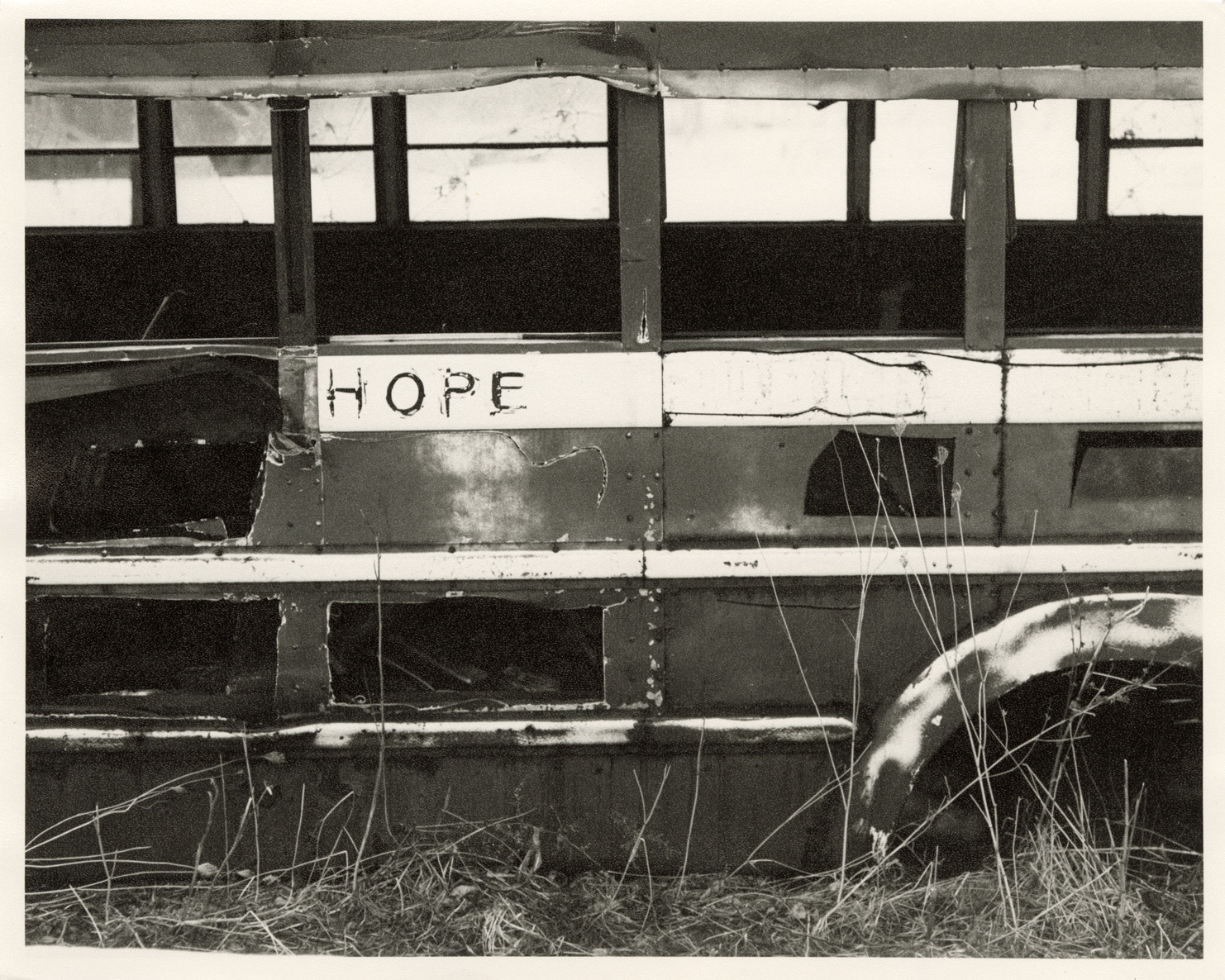 Favorite this☆ Bus body Description: View of the word "Hope" painted on side of bus body. Label on back: "Michigan Thumb area--Past its prime--Hope." Handwritten on back: "Past its prime, Michigan." Details Resource ID: bh017936 Creator: Donahue, Steven W. Subject: Buses--Bodies--Michigan--Thumb District Photographers--Michigan Photographic prints Date Issued: Unknown year Format: 1 photographic print ; 8 x 10 in. Member of: Burton Historical Collection Steven W. Donahue Collection Filing Location: MS/Donahue, Steven W., Box 1 Rights: Physical rights are retained by DPL. Copyright is retained in accordance with U.S. copyright laws. Copyright transferred to Detroit Public Library, 2017-09-12.