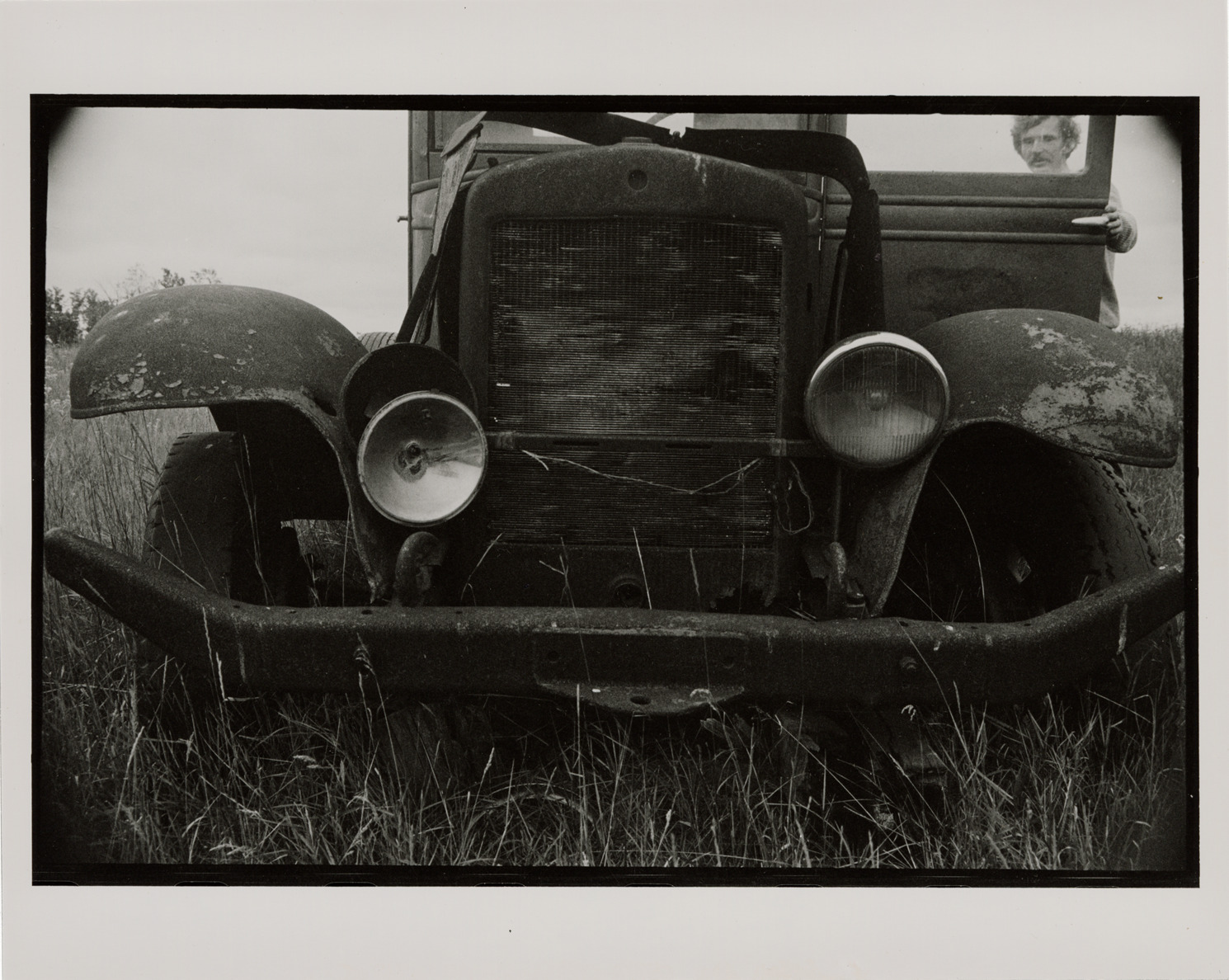 Favorite this☆ Abandoned automobile Description: View of an abandoned car in field. Man identified as "Gary" in background. Label on back: "Michigan Thumb area--Past its prime--Headlamps with Gary." Handwritten on back: "Past its prime, MI." Details Resource ID: bh017937 Creator: Donahue, Steven W. Subject: Automobiles--Michigan--Thumb District Photographers--Michigan Photographic prints Date Issued: Unknown year Format: 1 photographic print ; 8 x 10 in. Member of: Burton Historical Collection Steven W. Donahue Collection Filing Location: MS/Donahue, Steven W., Box 1 Rights: Physical rights are retained by DPL. Copyright is retained in accordance with U.S. copyright laws. Copyright transferred to Detroit Public Library, 2017-09-12.