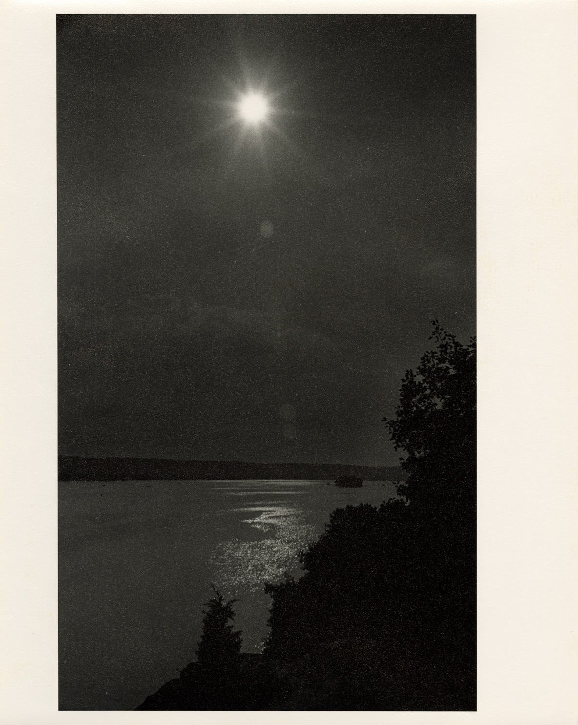 View of a lake with sun overhead. Label on back: "Michigan Thumb area--Water--Sun shining on water."