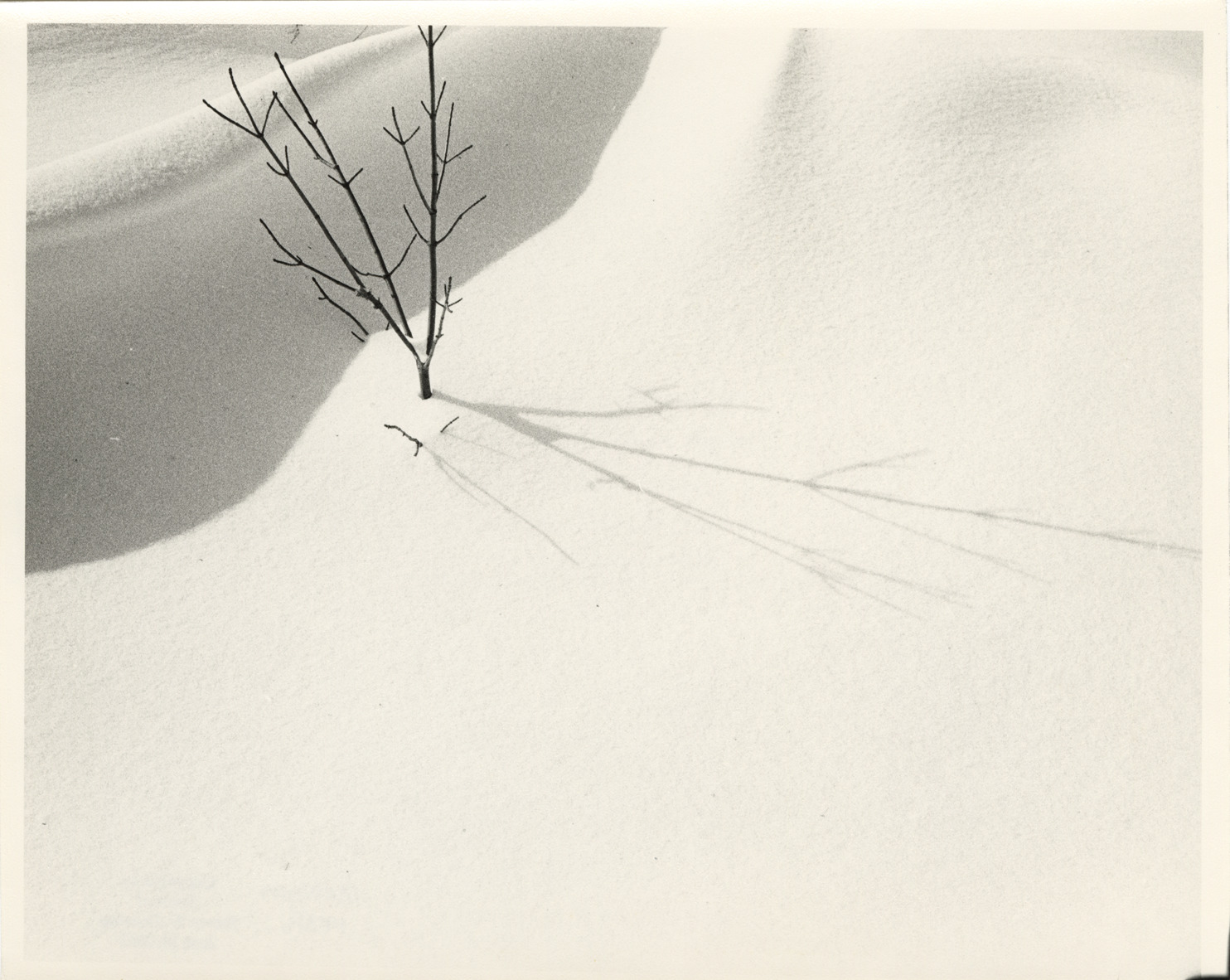 Favorite this☆ Twigs in snow Description: View of twigs in snow. Label on back: "Michigan Thumb area--Winter--Twigs and shadow on snow." Handwritten on back: "Michigan, 1970s." Details Resource ID: bh017977 Creator: Donahue, Steven W. Subject: Snow--Michigan--Thumb District Twigs--Michigan--Thumb District Photographers--Michigan Photographic prints Date Issued: Unknown year in the decade of the 1970s Format: 1 photographic print ; 8 x 10 in. Member of: Burton Historical Collection Steven W. Donahue Collection Filing Location: MS/Donahue, Steven W., Box 1 Rights: Physical rights are retained by DPL. Copyright is retained in accordance with U.S. copyright laws. Copyright transferred to Detroit Public Library, 2017-09-12.