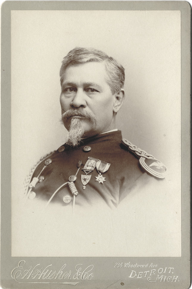 Portrait of Orlando Metcalfe Poe. Embossed on front: "E.H. Husher & Co. 236 Woodward Ave., Detroit, Mich." Handwritten on back: "Poe, Major O.M. Gen'l Poe."