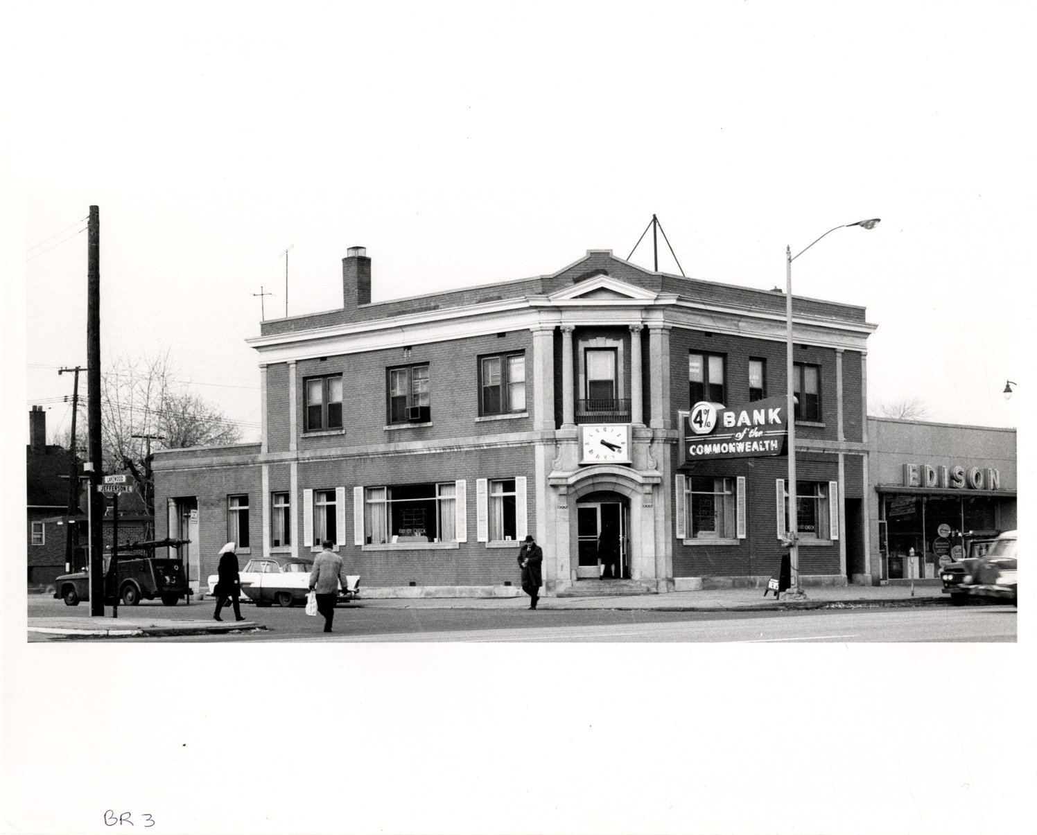 Favorite this☆ Bank of the Commonwealth Description: View of the Bank of the Commonwealth, on the corner of East Jefferson Avenue and Lakewood. Pedestrians cross street. Handwritten on front: "BR 3." Handwritten on back: "Jefferson-Lakewood." Details Resource ID: bh018259 Subject: Bank buildings--Michigan--Detroit Photographic prints Date Issued: Unknown year Format: 1 photographic print ; 8 x 10 in. Member of: Burton Historical Collection Filing Location: D/Banks-Bank of the Commonwealth Rights: Physical rights are retained by DPL. Copyright is retained in accordance with U.S. copyright laws.