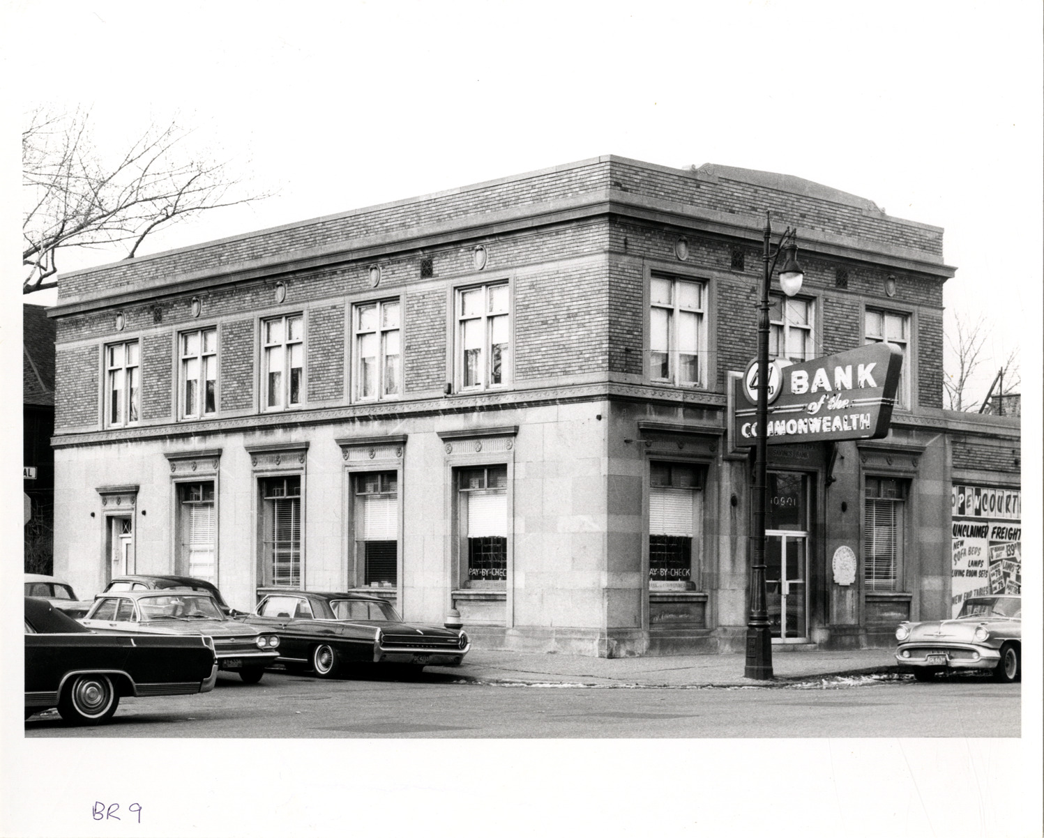 Favorite this☆ Bank of the Commonwealth Description: View of the Bank of the Commonwealth, located on the corner of Kercheval and LaMay. Handwritten on front: "BR 9." Cars parked in street. Handwritten on back: "Kercheval-LaMay." Details Resource ID: bh018263 Subject: Bank buildings--Michigan--Detroit Automobiles--Michigan--Detroit Photographic prints Date Issued: Unknown year Format: 1 photographic print ; 8 x 10 in. Member of: Burton Historical Collection Filing Location: D/Banks-Bank of the Commonwealth Rights: Physical rights are retained by DPL. Copyright is retained in accordance with U.S. copyright laws.