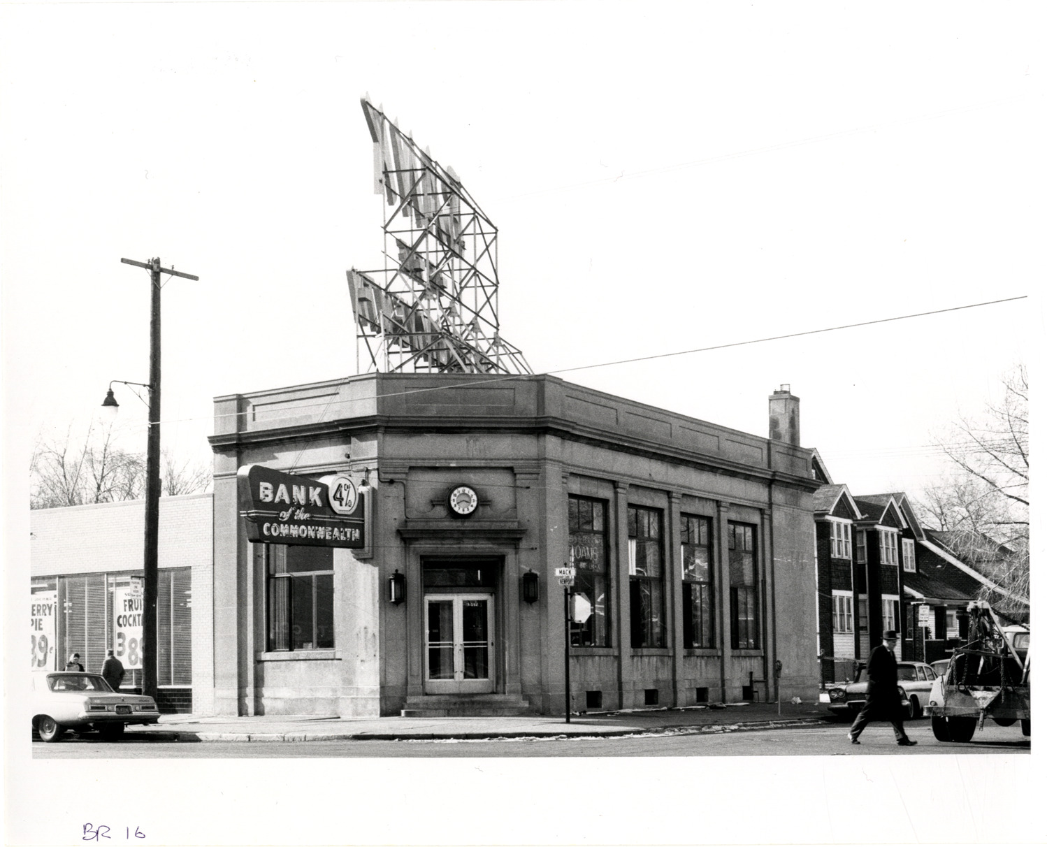 Favorite this☆ Bank of the Commonwealth Description: View of the Bank of the Commonwealth, located at Mack Avenue and Newport. Handwritten on front: "BR 16." Handwritten on back: "Mack-Newport." Details Resource ID: bh018268 Subject: Bank buildings--Michigan--Detroit Photographic prints Date Issued: Unknown year Format: 1 photographic print ; 8 x 10 in. Member of: Burton Historical Collection Filing Location: D/Banks-Bank of the Commonwealth Rights: Physical rights are retained by DPL. Copyright is retained in accordance with U.S. copyright laws.