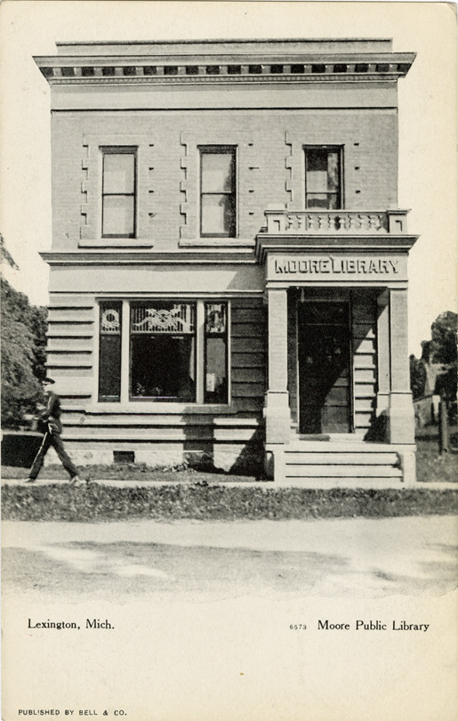 Favorite this☆ Moore Public Library, Lexington, Michigan Description: View of the Moore Public Library in Lexington, Michigan. Printed on front: "Lexington, Mich. Moore Public Library. Published by Bell & Co." Details Resource ID: bh018294 Subject: Library buildings--Michigan--Lexington Public libraries--Michigan--Lexington Photographic prints Postcards Publisher: Bell & Co. Date Issued: Unknown year Format: 1 postcard ; 5.5 x 3.5 in. Member of: Burton Historical Collection Filing Location: M/Localities-Lexington Rights: Physical rights are retained by DPL. Copyright is retained in accordance with U.S. copyright laws.