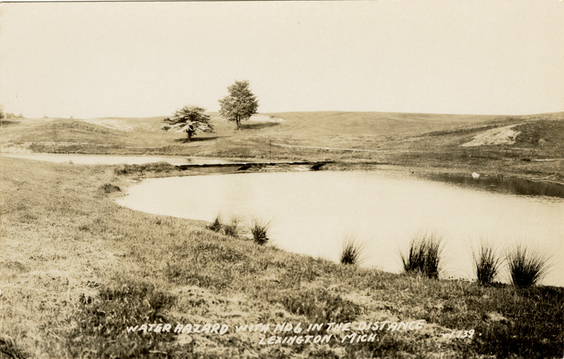 Favorite this☆ Water hazard at golf course, Lexington, Michigan Description: View of water hazard at golf course in Lexington, Michigan. Printed on front: "Water hazard with no. 6 in the distance. Lexington, Mich." Details Resource ID: bh018296 Subject: Golf courses--Michigan--Lexington Ponds--Michigan--Lexington Photographic prints Postcards Date Issued: Unknown year Format: 1 postcard ; 3.5 x 5.5 in. Member of: Burton Historical Collection Filing Location: M/Localities-Lexington Rights: Physical rights are retained by DPL. Copyright is retained in accordance with U.S. copyright laws.