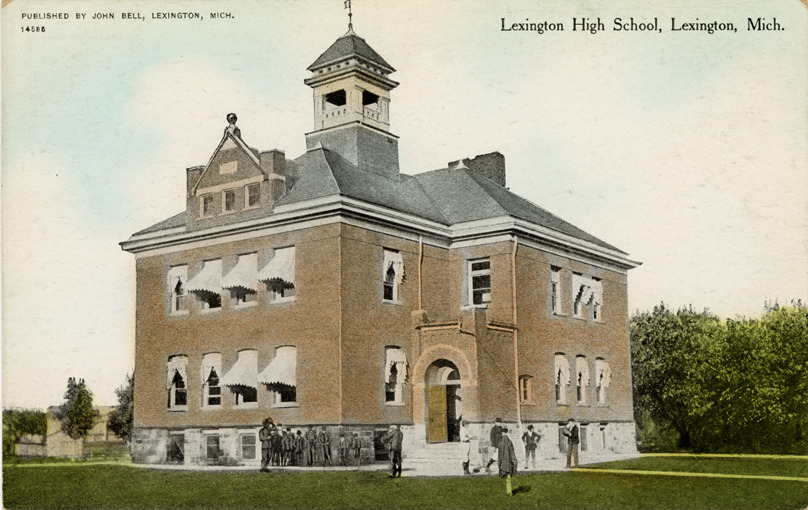 Favorite this☆ Lexington High School, Lexington, Michigan Description: View of Lexington High School at Lexington, Michigan. Printed on front: "Lexington High School, Lexington, Mich. Published by John Bell, Lexington, Mich." Details Resource ID: bh018297 Subject: High school buildings--Michigan--Lexington Postcards Publisher: John Bell Date Issued: Unknown year Format: 1 postcard : col. ; 3.5 x 5.5 in. Member of: Burton Historical Collection Filing Location: M/Localities-Lexington Rights: Physical rights are retained by DPL. Copyright is retained in accordance with U.S. copyright laws.