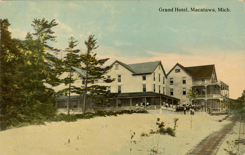 Favorite this☆ Grand Hotel, Macatawa, Michigan Description: View of the Grand Hotel at Macatawa, Michigan. Printed on front: "Grand Hotel, Macatawa, Mich." Printed on back: "Published by Coster Photo Supply Co., Holland, Mich. Made in U.S.A." Details Resource ID: bh018362 Subject: Hotels--Michigan--Macatawa Postcards Publisher: Coster Photo Supply Co. Date Issued: Unknown year Format: 1 postcard : col. ; 3.5 x 5.5 in. Member of: Burton Historical Collection Filing Location: M/Localities-Macatawa Rights: Physical rights are retained by DPL. Copyright is retained in accordance with U.S. copyright laws.