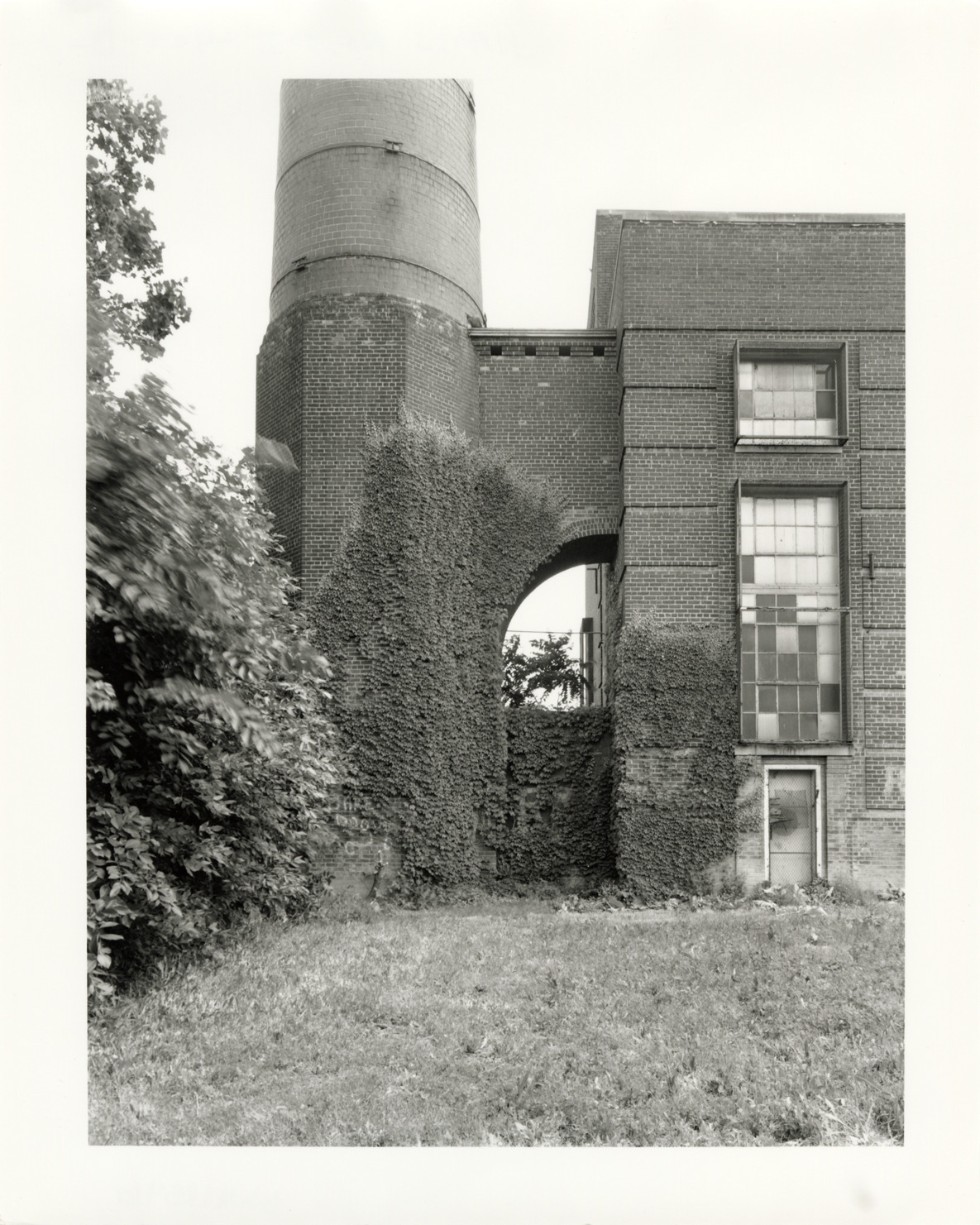View of smokestack and bridge to boiler house of central heating plant for Parkside Homes and Addition, located behind 12515 East Warren Avenue. Located at Connor and East Warren Avenues, Parkside Homes was the first federally-funded low-income public housing project built in Detroit and Michigan. Finding aid: "View south, northeast smoke stack base and bridge to boiler house."