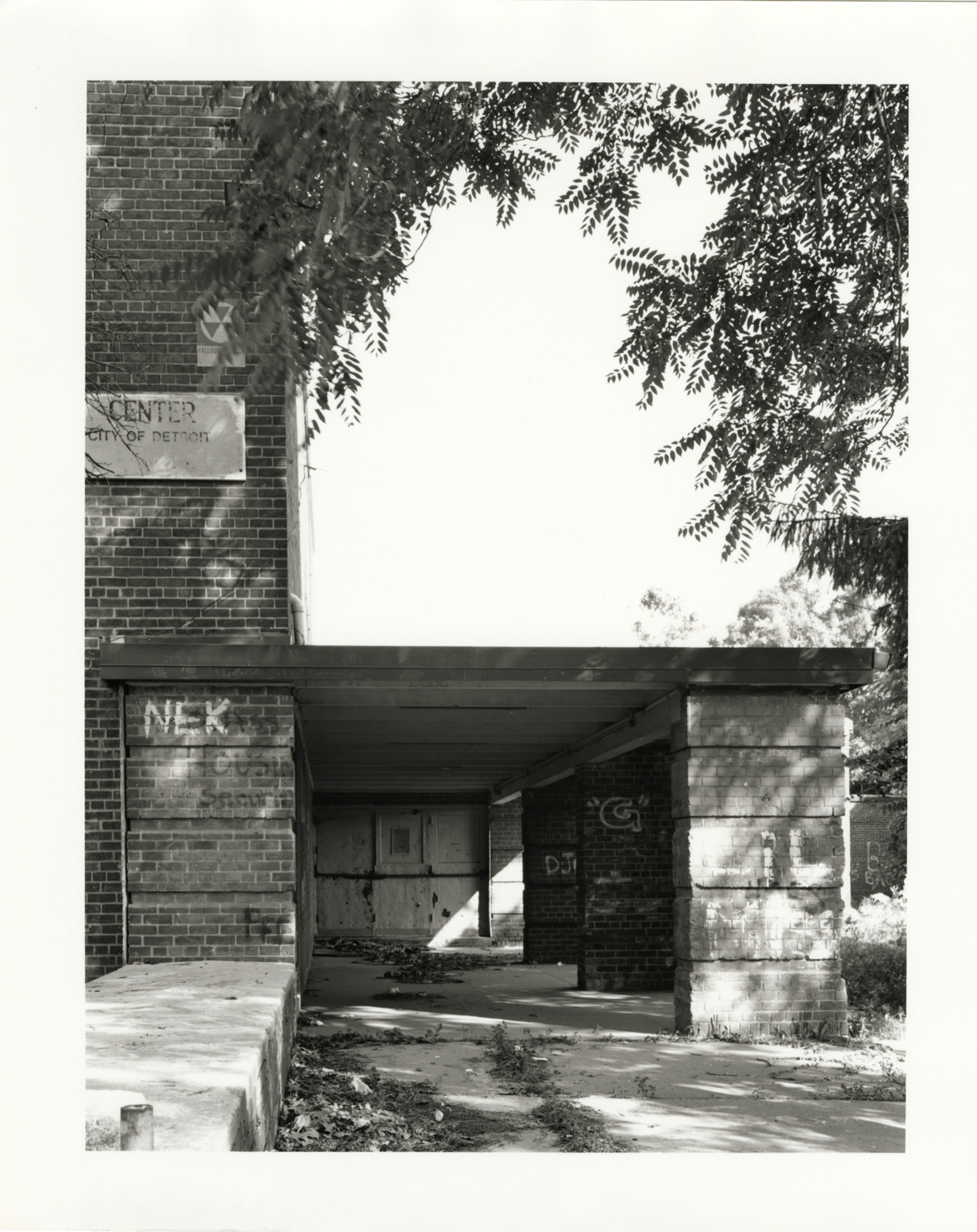View of the entry porch for the Community Building, Parkside Homes and Addition, located at the northeast corner of Franklin Road and Franklin Court. Located at Connor and East Warren Avenues, Parkside Homes was the first federally-funded low-income public housing project built in Detroit and Michigan. Finding aid: "Entry porch."