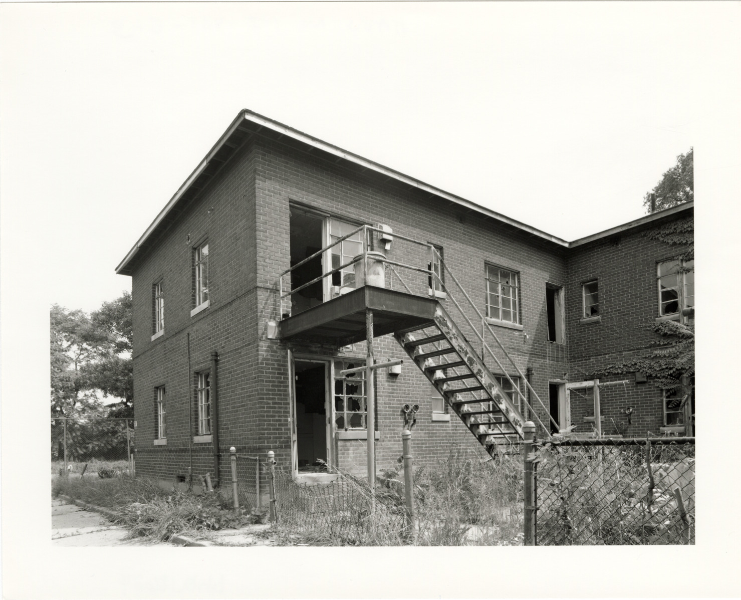 View of building 207, PWA flat buildings, Parkside Homes and Addition. Located at Connor and East Warren Avenues, Parkside Homes was the first federally-funded low-income public housing project built in Detroit and Michigan. Finding aid: "View northeast, west end and south side of building 207."