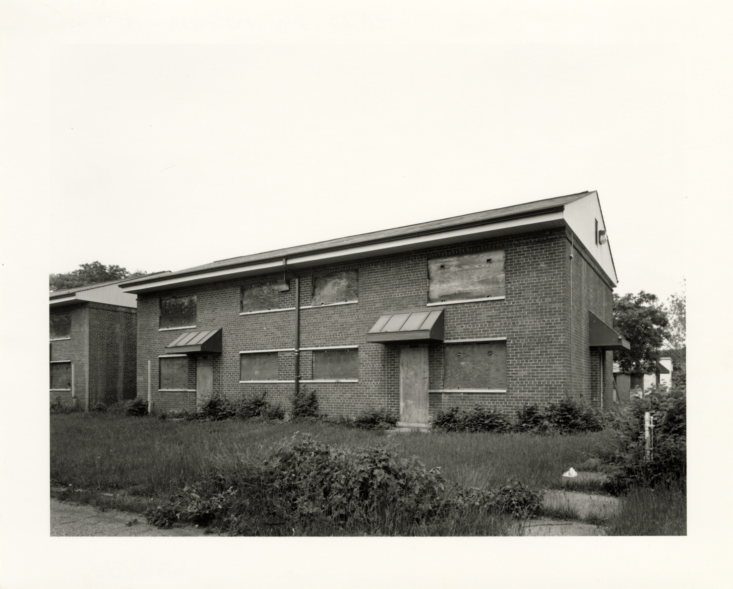 View of building 307, a Type 1 World War II era building, Parkside Homes and Addition. Located at Connor and East Warren Avenues, Parkside Homes was the first federally-funded low-income public housing project built in Detroit and Michigan. Finding aid: "View west, front and north end of building 307."