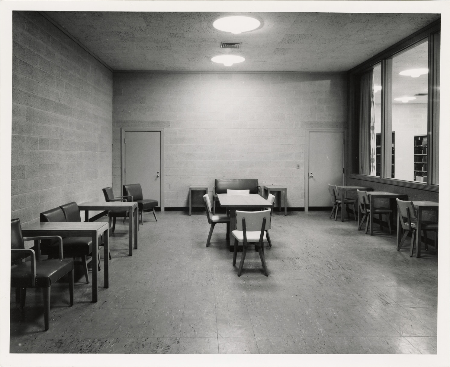 View of a study room in the Lincoln Branch Library, Detroit Public Library. Room is furnished with tables and chairs. Typed on back: "Detroit Public Library, Lincoln Branch. Dedicated October 29, 1951."