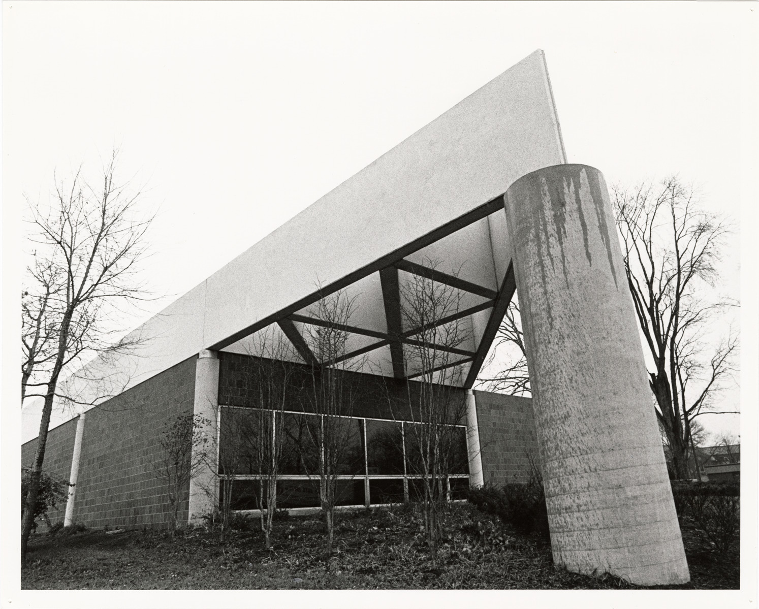 View of the Redford Branch Library, Detroit Public Library. Label on back: "Photograph by Tom Sherry, 259-5996." Handwritten on back: "Redford Branch, exterior, 1981-2010."