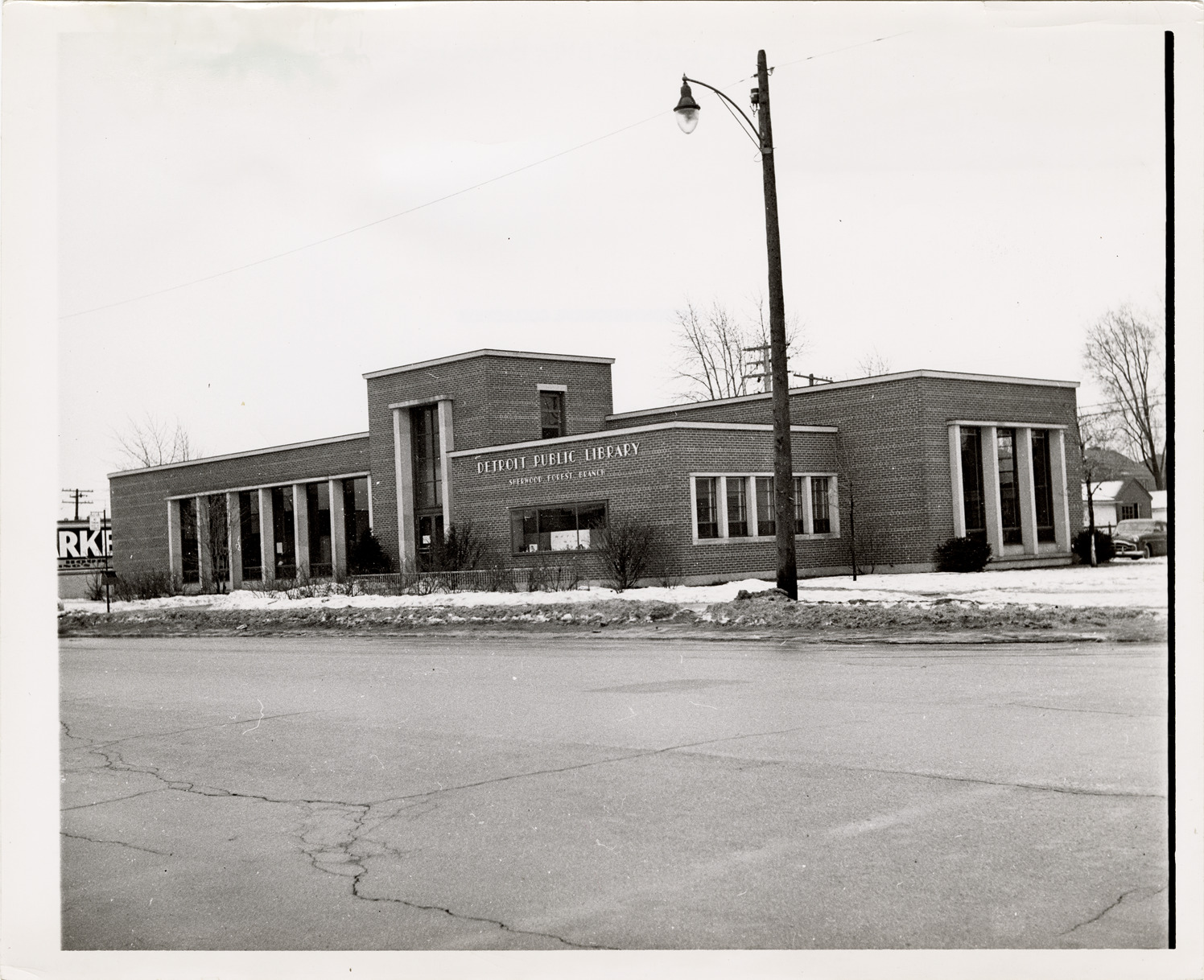 Favorite this☆ Sherwood Forest Branch Library Description: View of the Sherwood Forest Branch Library, Detroit Public Library. Handwritten on back: "Sherwood Forest Branch, exterior view. Photo taken in 1952." Details Resource ID: bh019100 Subject: Detroit Public Library. Sherwood Forest Branch Library buildings--Michigan--Detroit Branch libraries--Michigan--Detroit Public libraries--Michigan--Detroit Photographic prints Format: 1 photographic print ; 8 x 10 in. Member of: Burton Historical Collection Filing Location: D/Libraries-DPL-Branches-Sherwood Forest Rights: Physical rights are retained by DPL. Copyright is retained in accordance with U.S. copyright laws.