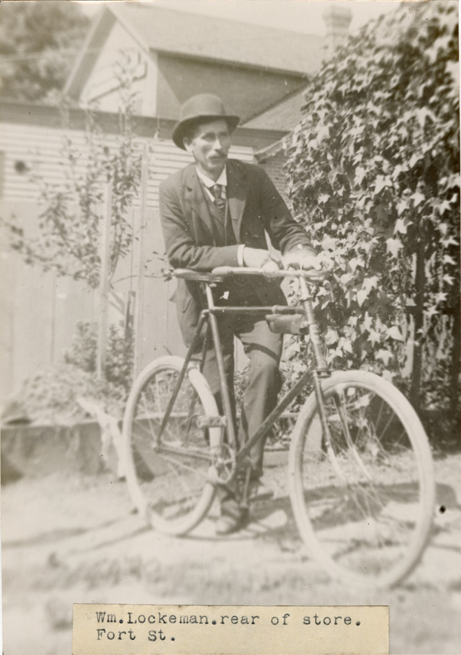 Favorite this☆ William Lockeman, posing with bicycle Description: View of William Lockeman, posing with bicycle. Label on front: "Wm. Lockeman, rear of store, Fort St." Details Resource ID: bh019198 Subject: Men--Portraits Bicycles--Michigan--Detroit Photographic prints Date Issued: Unknown year Format: 1 photographic print ; 6.5 x 4.5 in. Member of: Burton Historical Collection Filing Location: M/Localities-Delray Rights: Physical rights are retained by DPL. Copyright is retained in accordance with U.S. copyright laws.