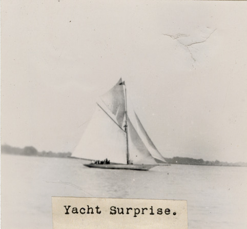 View of the yacht "Surprise." Label on front: "Yacht Surprise."