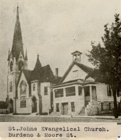 Favorite this☆ St. John's Evangelical Church Description: View of St. John's Evangelical Church. Label on front: "St. Johns Evangelical Church. Burdeno & Moore St." Details Resource ID: bh019264 Subject: Church buildings--Michigan--Detroit Photographic prints Date Issued: Unknown year Format: 1 photographic print ; 4 x 3.5 in. Member of: Burton Historical Collection Filing Location: M/Localities-Delray-Churches Rights: Physical rights are retained by DPL. Copyright is retained in accordance with U.S. copyright laws.
