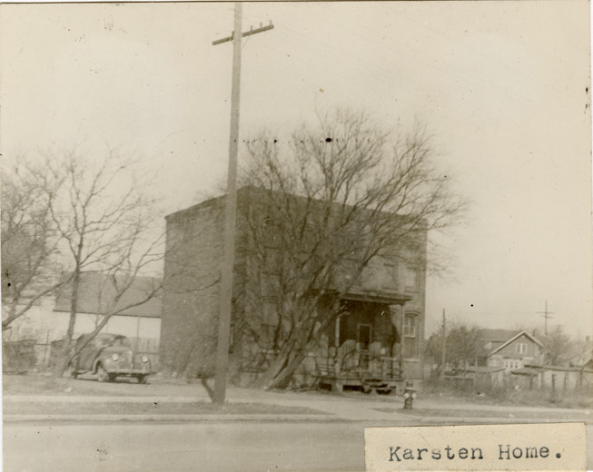 Favorite this☆ Karsten residence, Delray neighborhood Description: View of the Karsten residence in the Delray neighborhood. Two-story house has covered entry porch and flat roof. Label on front: "Karsten home." Details Resource ID: bh019275 Subject: Dwellings--Michigan--Detroit Photographic prints Date Issued: Unknown year Format: 1 photographic print ; 3.5 x 4.5 in. Member of: Burton Historical Collection Filing Location: M/Localities-Delray-Historic houses Rights: Physical rights are retained by DPL. Copyright is retained in accordance with U.S. copyright laws.