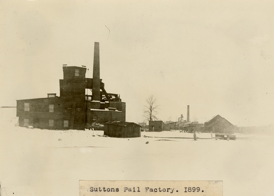 View of the Sutton Manufacturing Company, Delray neighborhood. Label on front: "Suttons pail factory, 1899."