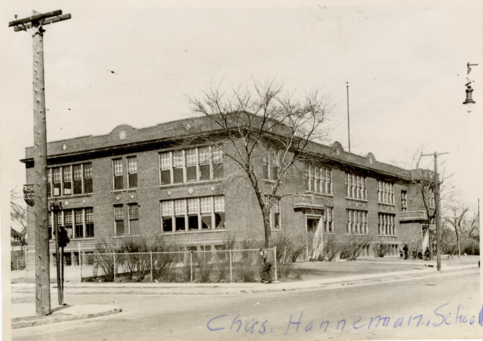 Favorite this☆ Charles Hanneman School, Delray neighborhood Description: View of the Charles Hanneman School, Delray neighborhood. Handwritten on front: "Chas. Hanneman School." Details Resource ID: bh019327 Subject: School buildings--Michigan--Detroit Photographic prints Date Issued: Unknown year Format: 1 photographic print ; 3.25 x 4.5 in. Member of: Burton Historical Collection Filing Location: M/Localities-Delray-Schools Rights: Physical rights are retained by DPL. Copyright is retained in accordance with U.S. copyright laws.