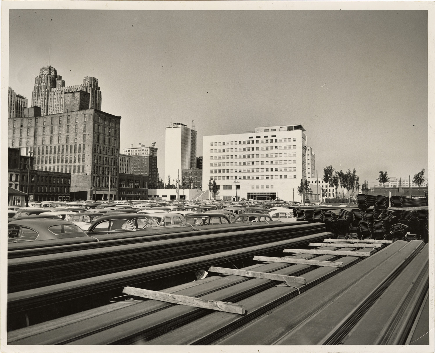 Favorite this☆ Parking lot in downtown Detroit Description: View of cars parked in a lot in downtown Detroit, Michigan. Guardian Building and other buildings in background. Details Resource ID: bh019400 Subject: Parking lots--Michigan--Detroit Automobiles--Michigan--Detroit Commercial buildings--Michigan--Detroit Office buildings--Michigan--Detroit Detroit Housing Commission--Archives Photographic prints Date Issued: 1957 Format: 1 photographic print ; 8 x 10 in. Member of: Burton Historical Collection Filing Location: MS/Detroit Archives. Housing Commission. Lower Woodward and Griswold, 1957. 57:13 Rights: Physical rights are retained by DPL. Copyright is retained in accordance with U.S. copyright laws.