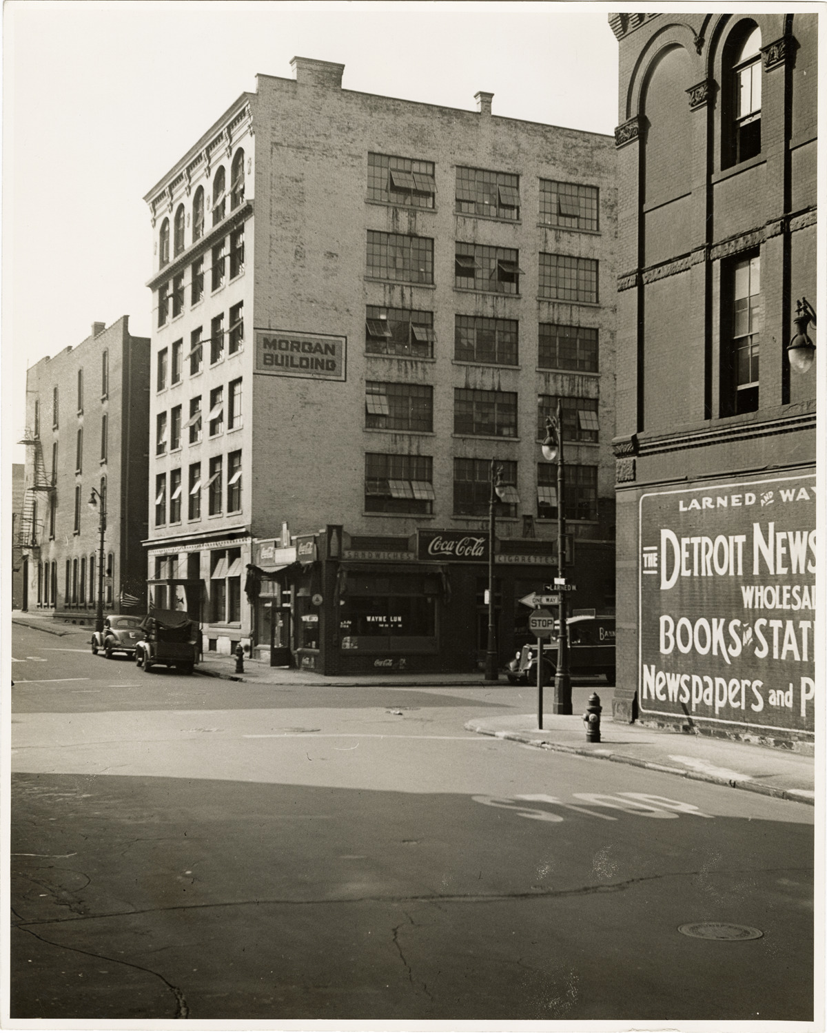 Favorite this☆ Morgan Building Description: View of the Morgan Building, located on Wayne Street, between Larned St. and Jefferson Ave. Handwritten on back: "Public bldgs. Morgan Bldg. (Built 1878). W.S. Wayne bet. Larned and Jefferson. Raymond, 7-44." Details Resource ID: bh019437 Creator: Raymond, Harold Subject: Commercial buildings--Michigan--Detroit Streets--Michigan--Detroit Detroit Housing Commission--Archives Photographic prints Date Issued: 1944-07 Format: 1 photographic print ; 10 x 8 in. Member of: Burton Historical Collection Filing Location: MS/Detroit Archives. Housing Commission. Wayne Street. 57:22 Rights: Physical rights are retained by DPL. Copyright is retained in accordance with U.S. copyright laws.