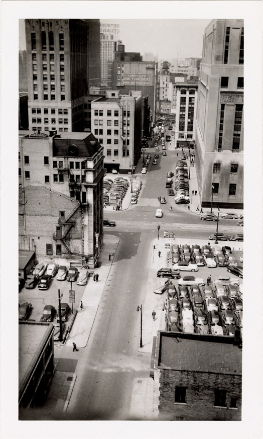 Favorite this☆ Aerial view of Wayne Street Description: Bird's-eye view of buildings and cars in parking lots along Wayne St. Details Resource ID: bh019438 Subject: Streets--Michigan--Detroit Commercial buildings--Michigan--Detroit Parking lots--Michigan--Detroit Automobiles--Michigan--Detroit Detroit Housing Commission--Archives Photographic prints Date Issued: 1957 Format: 1 photographic print ; 5.75 x 3.5 in. Member of: Burton Historical Collection Filing Location: MS/Detroit Archives. Housing Commission. Wayne Street, 1957. 57:22 Rights: Physical rights are retained by DPL. Copyright is retained in accordance with U.S. copyright laws.