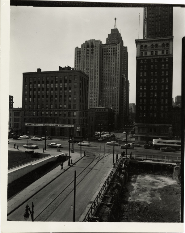 Favorite this☆ Jefferson Avenue Description: View of cars on Jefferson Ave. Standard Federal Savings & Loan Association building and other office buildings in background. Details Resource ID: bh019486 Subject: Streets--Michigan--Detroit Bank buildings--Michigan--Detroit Office buildings--Michigan--Detroit Detroit Housing Commission--Archives Photographic prints Date Issued: Unknown year Format: 1 photographic print ; 5 x 4 in. Member of: Burton Historical Collection Filing Location: MS/Detroit Archives. Housing Commission. Jefferson Avenue buildings. 57:33 Rights: Physical rights are retained by DPL. Copyright is retained in accordance with U.S. copyright laws.