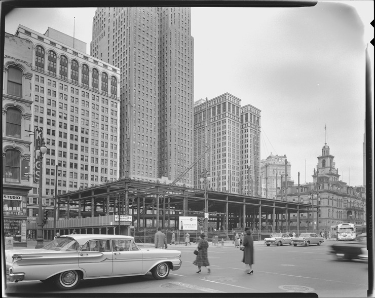 Favorite this☆ National Bank of Detroit building during construction Description: View of the National Bank of Detroit building during construction. Car and pedestrians in foreground. Ford Building, Penobscot Building and Dime Building in background. Details Resource ID: bh019623 Subject: Bank buildings--Michigan--Detroit--Design and construction National Bank of Detroit Automobiles--Michigan--Detroit Office buildings--Michigan--Detroit Detroit Housing Commission--Archives Photography--Negatives Date Issued: 1957 Format: 1 negative ; 4 x 5 in. Member of: Burton Historical Collection Filing Location: MS/Detroit Archives. Housing Commission. National Bank building, 1957. 57:20 Rights: Physical rights are retained by DPL. Copyright is retained in accordance with U.S. copyright laws.