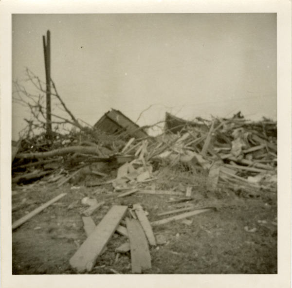 Favorite this☆ Debris from tornado, Beecher, Michigan Description: View of debris left by tornado that touched down in Beecher, a community near Flint, Michigan. The tornado, which struck Genesee County, Michigan on June 8, 1953, is considered to be one of the deadliest tornadoes in U.S. history. Details Resource ID: bh019858 Creator: DeDominces, Thomas Subject: Tornado damage--Michigan--Beecher Tornadoes--Michigan--Beecher Photographers--Michigan--Beecher Photographic prints Date Issued: 1953-06 Format: 1 photographic print ; 4 x 4 in. Member of: Burton Historical Collection Filing Location: M/Localities-Flint-Tornado, 1953 Rights: Physical rights are retained by DPL. Copyright is retained in accordance with U.S. copyright laws.