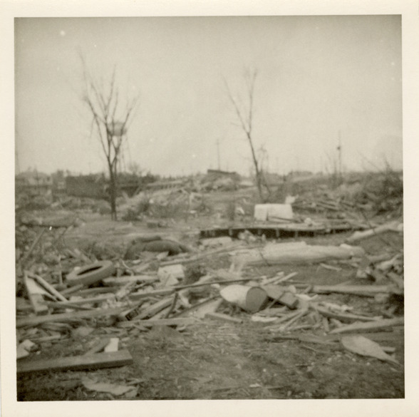 Favorite this☆ Debris from tornado, Beecher, Michigan Description: View of debris left by tornado that touched down in Beecher, a community near Flint, Michigan. The tornado, which struck Genesee County, Michigan on June 8, 1953, is considered to be one of the deadliest tornadoes in U.S. history. Details Resource ID: bh019861 Creator: DeDominces, Thomas Subject: Tornado damage--Michigan--Beecher Tornadoes--Michigan--Beecher Photographers--Michigan--Beecher Photographic prints Date Issued: 1953-06 Format: 1 photographic print ; 4 x 4 in. Member of: Burton Historical Collection Filing Location: M/Localities-Flint-Tornado, 1953 Rights: Physical rights are retained by DPL. Copyright is retained in accordance with U.S. copyright laws.