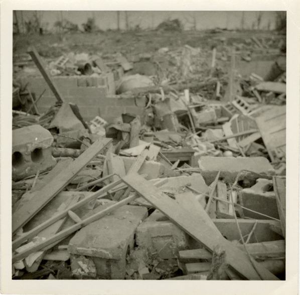 Favorite this☆ Debris from tornado, Beecher, Michigan Description: View of debris left by tornado that touched down in Beecher, a community near Flint, Michigan. The tornado, which struck Genesee County, Michigan on June 8, 1953, is considered to be one of the deadliest tornadoes in U.S. history. Details Resource ID: bh019866 Creator: DeDominces, Thomas Subject: Tornado damage--Michigan--Beecher Tornadoes--Michigan--Beecher Photographers--Michigan--Beecher Photographic prints Date Issued: 1953-06 Format: 1 photographic print ; 4 x 4 in. Member of: Burton Historical Collection Filing Location: M/Localities-Flint-Tornado, 1953 Rights: Physical rights are retained by DPL. Copyright is retained in accordance with U.S. copyright laws.
