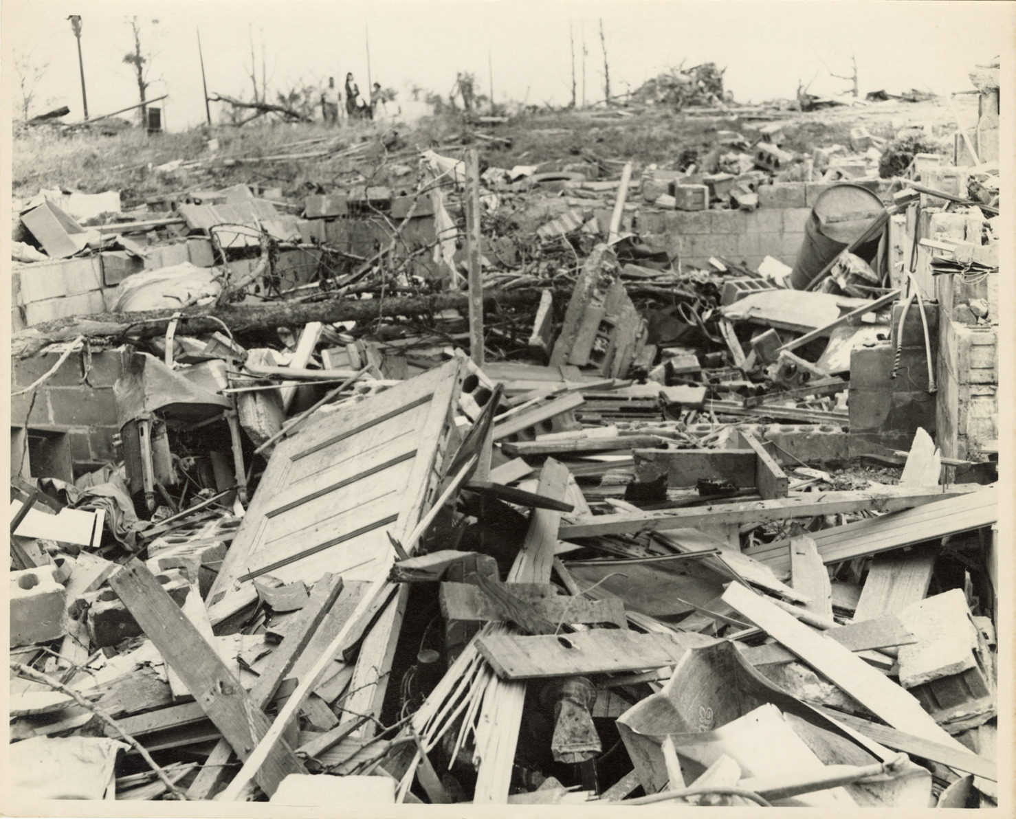 Favorite this☆ Debris from tornado, Beecher, Michigan Description: Close-up view of debris left by tornado that touched down in Beecher, a community near Flint, Michigan. The tornado, which struck Genesee County, Michigan on June 8, 1953, is considered to be one of the deadliest tornadoes in U.S. history. Details Resource ID: bh019875 Creator: DeDominces, Thomas Subject: Tornado damage--Michigan--Beecher Tornadoes--Michigan--Beecher Photographers--Michigan--Beecher Photographic prints Date Issued: 1953-06 Format: 1 photographic print ; 8 x 10 in. Member of: Burton Historical Collection Filing Location: M/Localities-Flint-Tornado, 1953 Rights: Physical rights are retained by DPL. Copyright is retained in accordance with U.S. copyright laws.