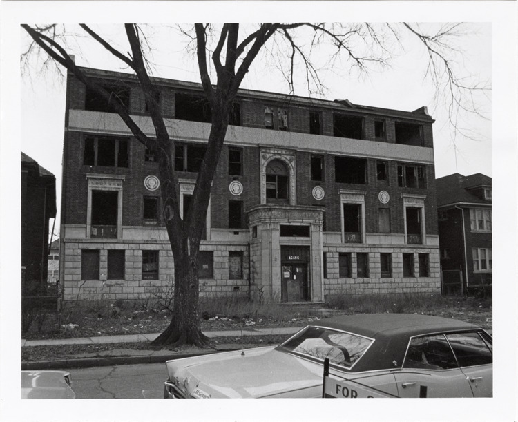 Favorite this☆ Abandoned apartment building at 1676 Gladstone Description: View of an abandoned apartment building located at 1676 Gladstone. Stamped on back: "Photography by D. Bruce Banta, Detroit." Handwritten on back: "1676 Gladstone. Parcel 45." Details Resource ID: bh019933 Creator: Banta, D. Bruce Subject: Apartment houses--Michigan--Detroit Abandoned buildings--Michigan--Detroit Detroit Housing Commission--Archives Photographers--Michigan--Detroit Photographic prints Date Issued: Unknown year Format: 1 photographic print ; 4 x 5 in. Member of: Burton Historical Collection Filing Location: MS/Detroit Archives. Housing Commission. Gladstone Street. 53:16 Rights: Physical rights are retained by DPL. Copyright is retained in accordance with U.S. copyright laws.