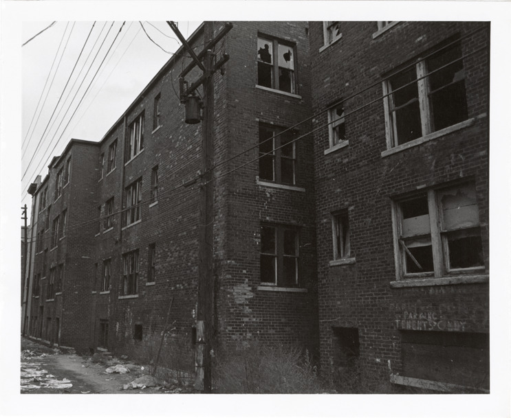 Favorite this☆ Abandoned apartment building at 2210 Pingree Description: Rear view of an abandoned brick apartment building, located at 2210 Pingree. Stamped on back: "Photography by D. Bruce Banta, Detroit." Handwritten on back: "2210 Pingree. Parcel 50." Details Resource ID: bh019963 Creator: Banta, D. Bruce Subject: Apartment houses--Michigan--Detroit Abandoned buildings--Michigan--Detroit Detroit Housing Commission--Archives Photographers--Michigan--Detroit Photographic prints Date Issued: Unknown year Format: 1 photographic print ; 4 x 5 in. Member of: Burton Historical Collection Filing Location: MS/Detroit Archives. Housing Commission. Pingree Street. 53:20 Rights: Physical rights are retained by DPL. Copyright is retained in accordance with U.S. copyright laws.