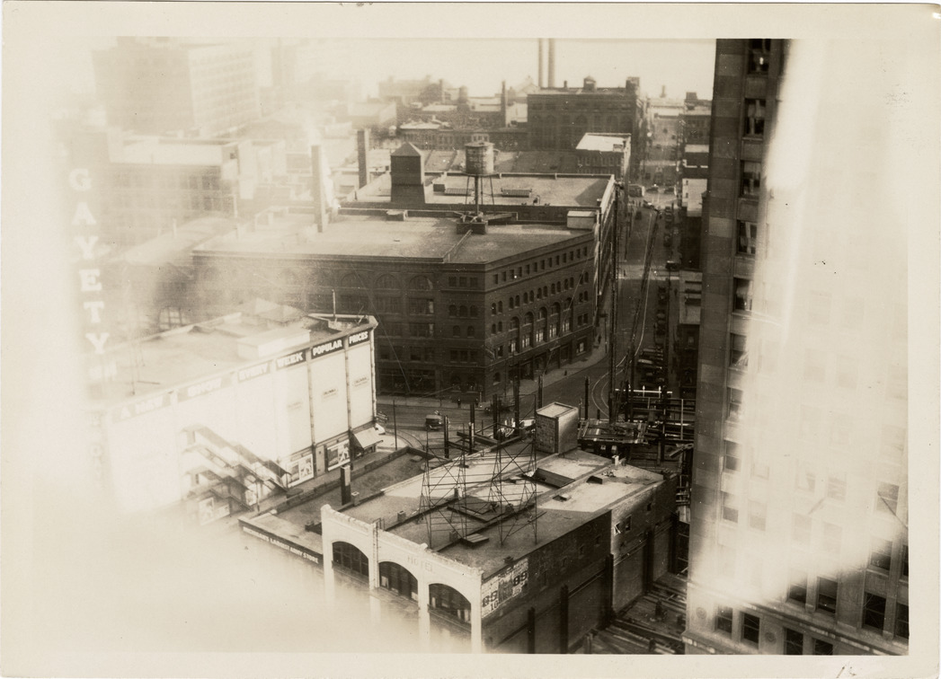 Favorite this☆ Buildings in downtown Detroit Description: Bird's-eye view of commercial and office buildings in downtown Detroit. Handwritten on back: "10-20-27." Details Resource ID: bh019990 Subject: Commercial buildings--Michigan--Detroit Office buildings--Michigan--Detroit Detroit Housing Commission--Archives Photographic prints Date Issued: 1927-10-20 Format: 1 photographic print ; 5 x 7 in. Member of: Burton Historical Collection Filing Location: MS/Detroit Archives. Housing Commission. City-County Building. 60:2 Rights: Physical rights are retained by DPL. Copyright is retained in accordance with U.S. copyright laws.