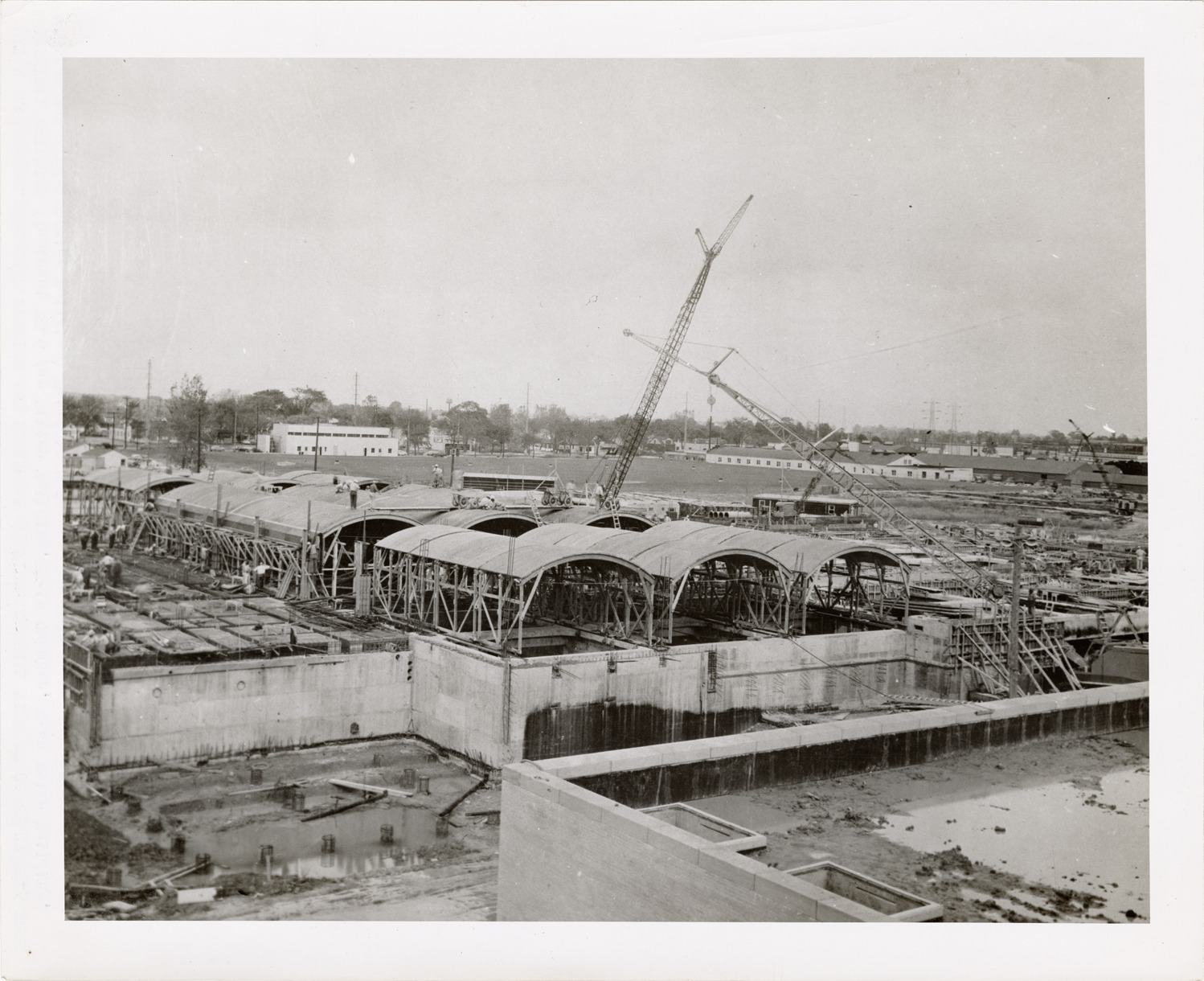 Northeast pumping and treatment station during construction, Detroit water supply system