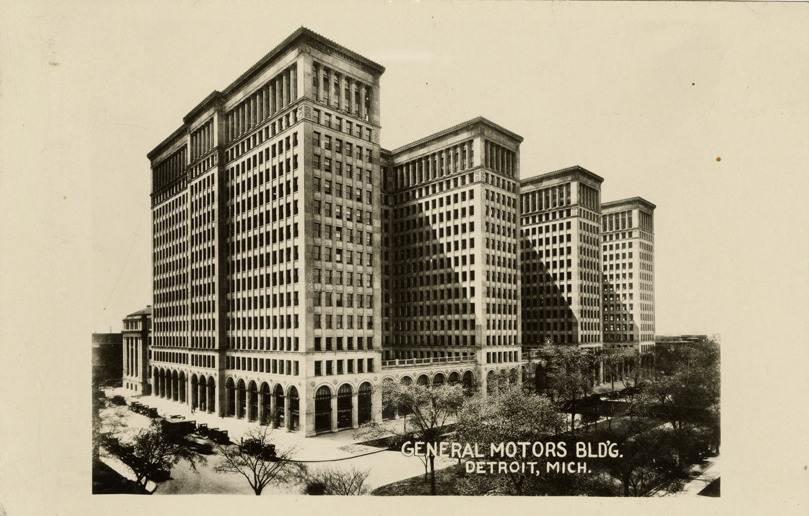 Favorite this☆ General Motors Building Description: View of the General Motors Building, designed by Albert Kahn. Printed on front: "General Motors Bldg., Detroit, Mich." Printed on back: "The Process Photo Studios. Troy at 21st St., Chicago, Ill." Details Resource ID: bh020071 Subject: Office buildings--Michigan--Detroit Kahn, Albert, 1869-1942 Photographic prints Postcards Publisher: Process Photo Studios Date Issued: Unknown year Format: 1 postcard ; 3.5 x 5.5 in. Member of: Burton Historical Collection Filing Location: E&M 74D4 725.23. Scrapbook, Detroit buildings Rights: Physical rights are retained by DPL. Copyright is retained in accordance with U.S. copyright laws.